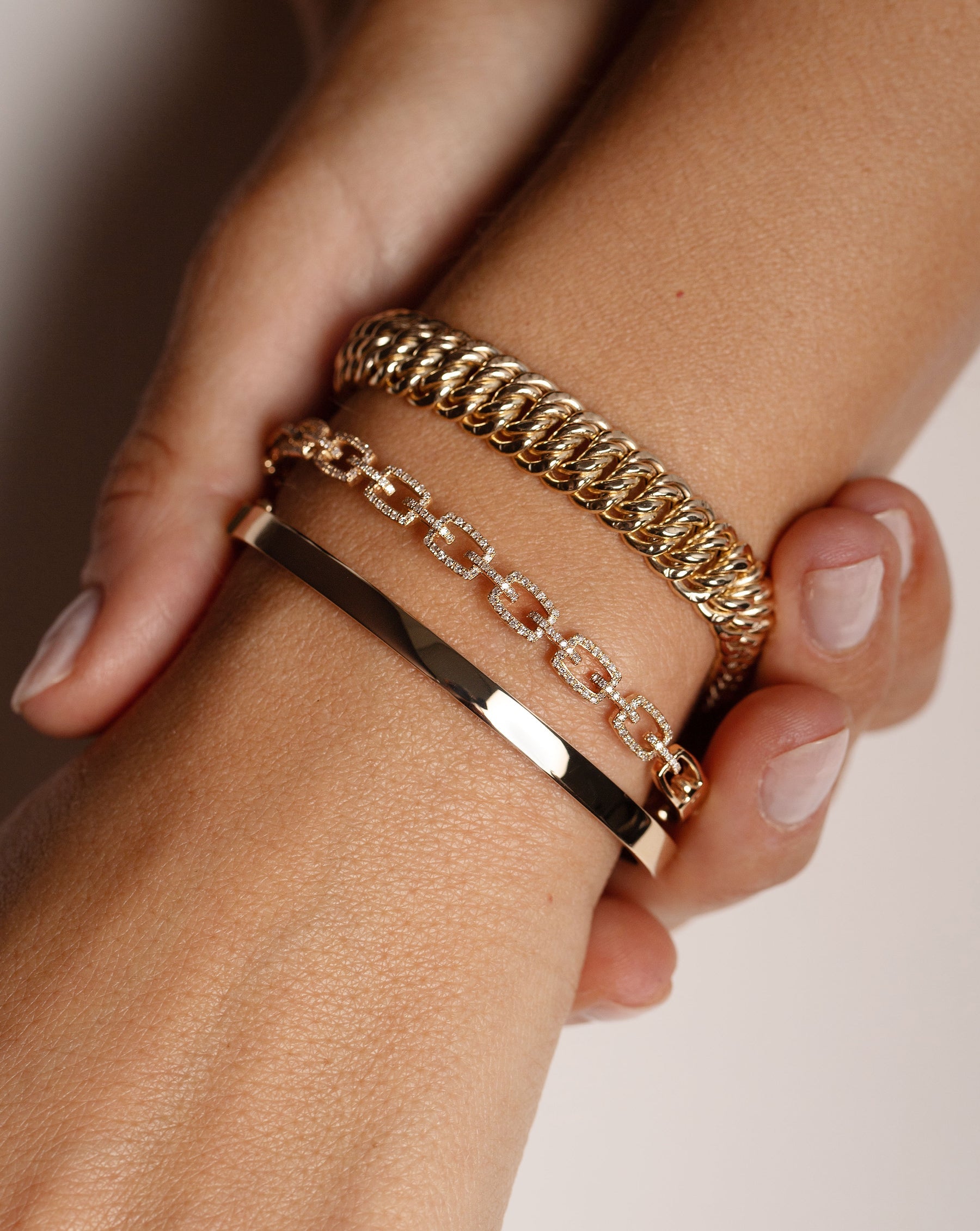 Why We Love It: The must-have piece for any wrist stack, these solid gold bangles are available in 3 widths to layer up or wear alone.